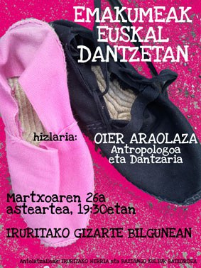 Hitzaldia: Emakumeak euskal dantzetan. Martxoak 26, asteartea, 19:00etan. Irurita, Gizarte bilgunea